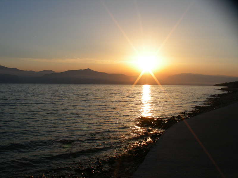 Plażujemy obok bistro VRILO, jednak duża fala skłania nas do przeniesienia się do zatoczki. Woda cieplejsza, ale wschodni wiatr, gorący jak podmuchy z piekła, mąci wodę i nic nie widać. Snujemy się po mieście